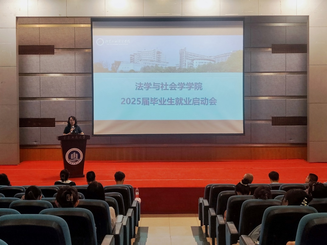 2024年6月20日下午15:00,bat365在线平台网址在博智楼7100学术报告厅召开2025届本科毕业生就业启动会暨毕业实习安排会。学院党委书记李莉莎、副院长刘勇、专职组织员陈善国、系主任公杰、焦海洋、罗兆均、实验室主任刘波、2025届辅导员杨威以及法学、知识产权、社会学三个专业的学生参会。会议由学团办主任、2025届辅导员何祖润主持。